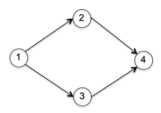 一个有向图 ,强连通分量(strongly connected component)是最大的子集 ,其中 内的任意一个顶点都有一条通路能到任意其他顶点。虽然定义和无向图的连通分量类似,但是实际含义完全不同。比如下面的图,看似是连通的,但并不是强连通分量,因为除了 1 之外其他点不能到任意点。