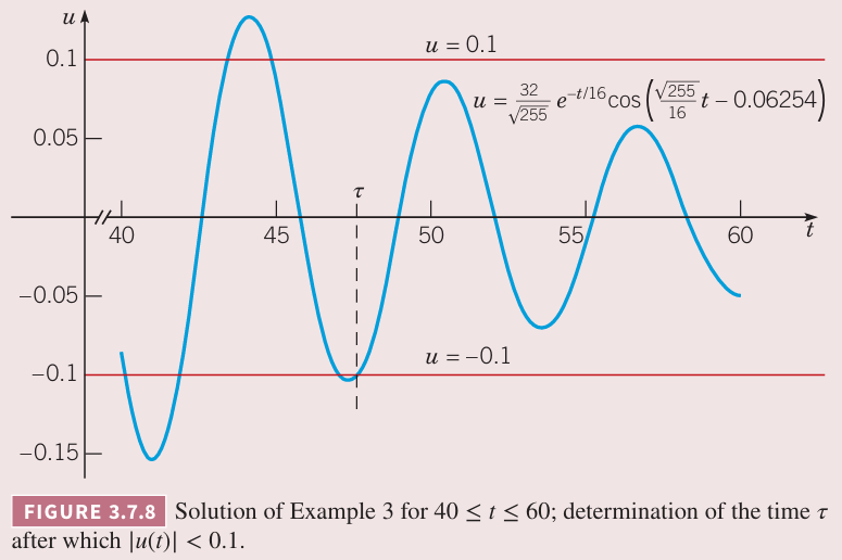 为了找到第一次运动穿过平衡点的时间,令 ,这是余弦为零的值。因此